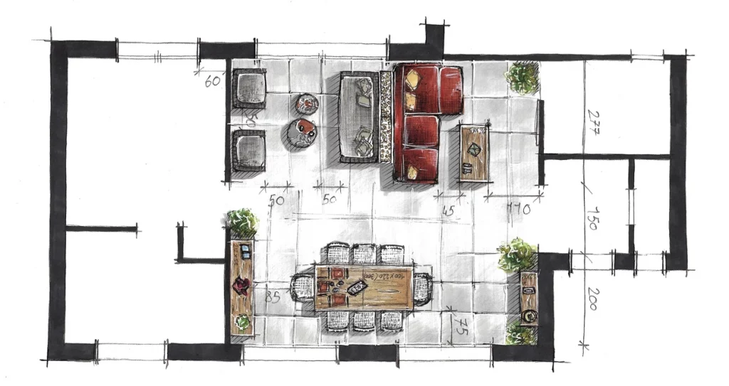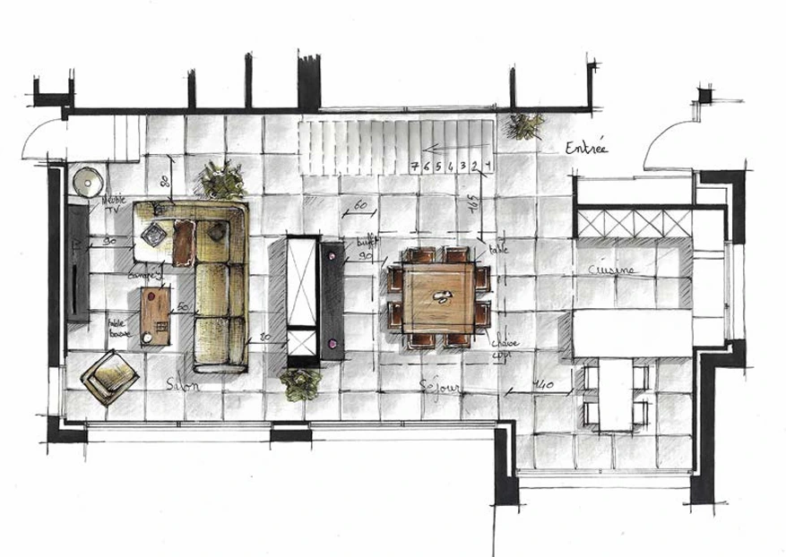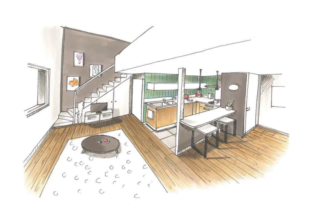 Pour donner vie à votre projet et vous aider à mieux vous projeter, nous allions technologie et savoir-faire artisanal. En plus des projections 3D réalistes, nous réalisons des esquisses et dessins à la main, permettant de capter chaque détail avec une approche plus sensible et artistique. Ces croquis apportent une vision complémentaire, mettant en valeur l’ambiance et les volumes, pour une conception encore plus immersive et personnalisée.